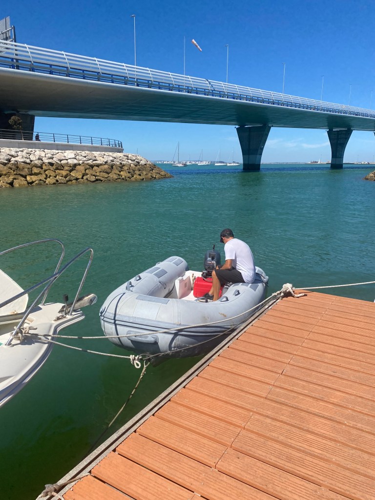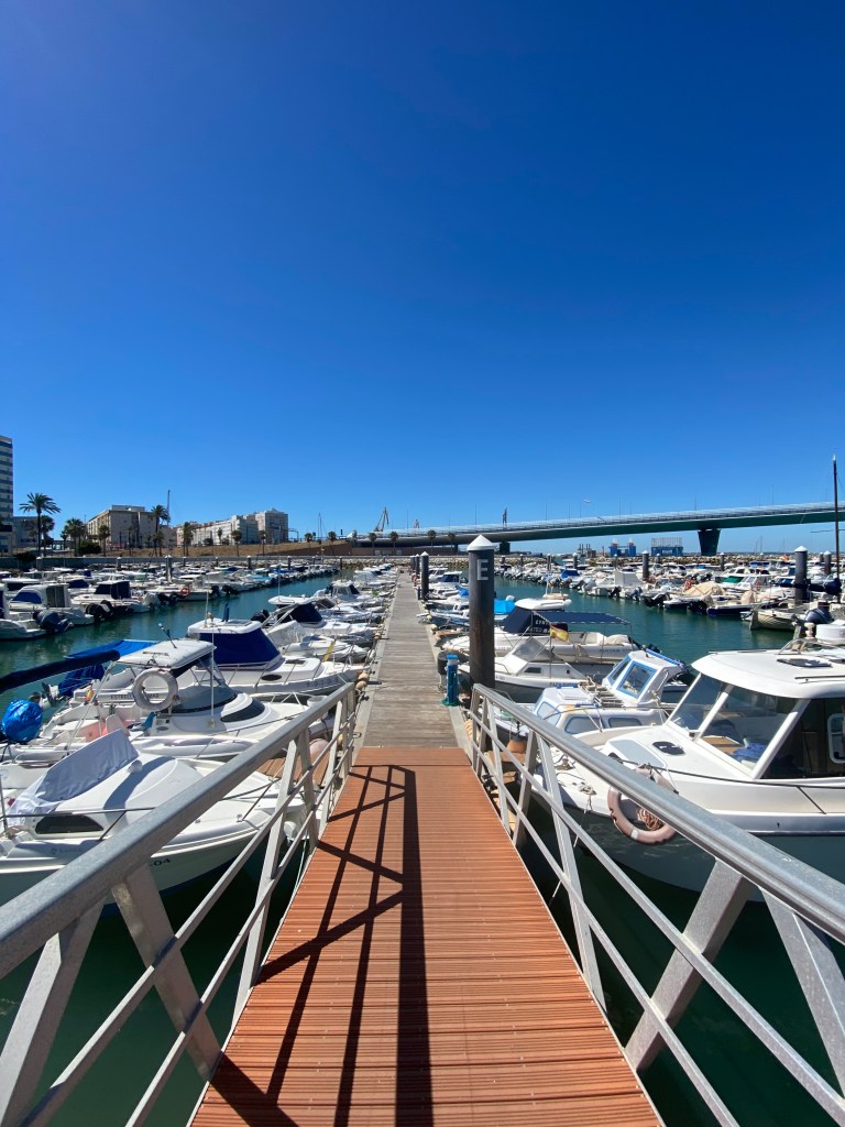Navegamos de Portugal a Cádiz, fue una navegación de 12 horas, salimos a las 5 pm de Isla da Culatra y llegamos al amanecer del siguiente día a Cádiz, España. En Cádiz nos anclamos afuera del Real Club Náutico, al otro lado del puente muy tranquilo para anclar. En el club náutico son muy amables y te dejan amarrar tu dinghy ahí por un par de horas para poder ir a tierra.